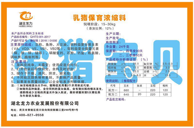 湖北龍力農(nóng)業(yè)發(fā)展股份有限公司坐落于武漢市黃陂區(qū)前川街向陽(yáng)街群順三里298號(hào)附1號(hào)。公司成立于2014年6月,公司自成立以來把“創(chuàng)全球最大養(yǎng)豬綜合服務(wù)”為企業(yè)愿景。致力于打造教保料品牌”作為公司發(fā)展的明確目標(biāo)。公司一直致力于豬營(yíng)養(yǎng)的研究和開發(fā),積極與國(guó)內(nèi)外高校和科研機(jī)構(gòu)合作,推廣養(yǎng)豬技術(shù)、動(dòng)物營(yíng)養(yǎng)新概念,向世界農(nóng)牧企業(yè)學(xué)習(xí)與合作。公司采用國(guó)內(nèi)先進(jìn)的生產(chǎn)工藝,選擇高精度電子配料秤,高均勻度、無殘留混合機(jī)等先進(jìn)設(shè)備....